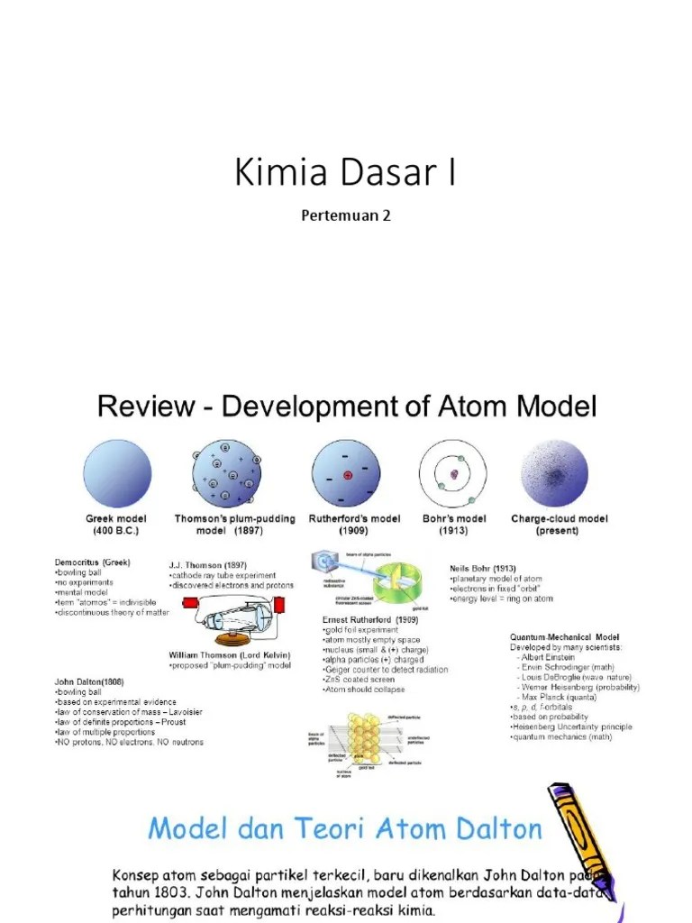 Teori dasar atom dikemukakan oleh demokritus pada abad ke 4 sm sebagai suatu benda yang sangat kecil hingga tidak dapat dibagi lagi. Kemudian model atom terus berkembang sampai model atom mekanika kuantum yang mengemukakan gagasan tentang orbitan.