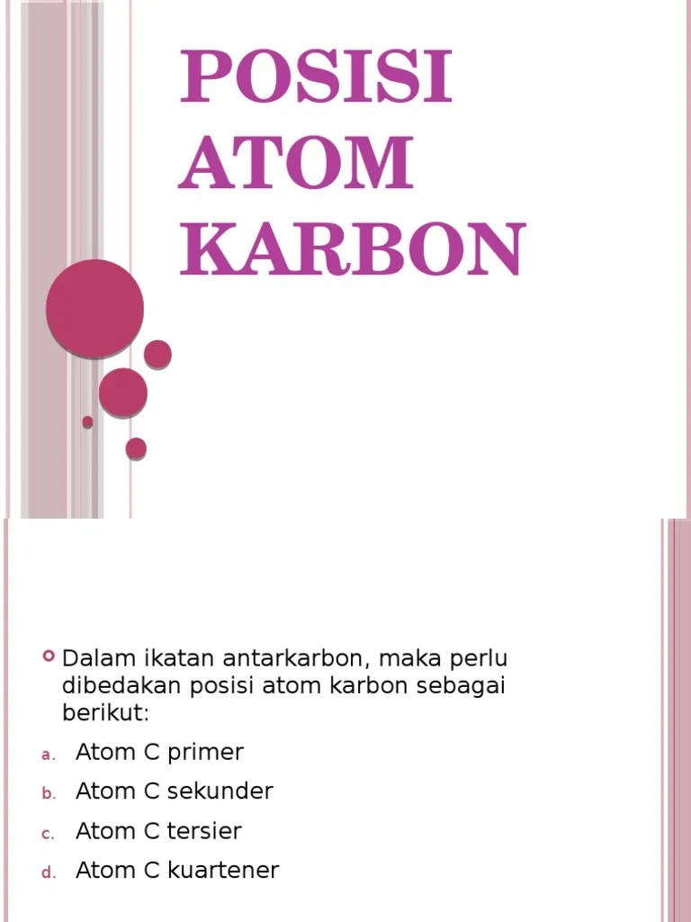 Minyak bumi adalah komoditas hasil tambang yang sangat penting peranannya dalam kehidupan manusia, terutama sebagai sumber energi. Atom karbon mempunyai ke khasan. Karbon mempunyai ukuran relative besar sehingga mampu mengikat semua unsure. Oleh karena itu alkohol dibedakan menjadi tiga, yaitu alkohol primer, alkohol sekunder, dan alkohol tersier. Karbon mempunyai 6 elektron valensi sehingga mampu mengikat 6 atom lain Mengapa tidak terdapat alkohol kuartener? Adalah ilmu yang mempelajari tentang komposisi, struktur, sifat dan perubahan dari suatu zat. Karbon mempunyai ukuran relative besar sehingga mampu mengikat semua unsure.